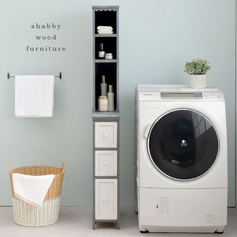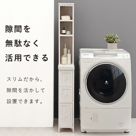 スリムサイズで狭い場所や隙間に設置可能なので、お部屋やランドリーなどのちょっとしたデットスペースはもちろん、今まで散らかりがちだったスペースをスッキリお洒落に演出できます。
