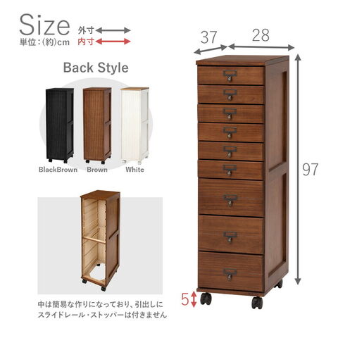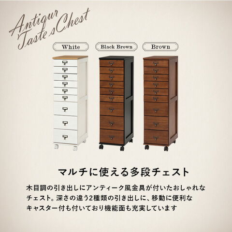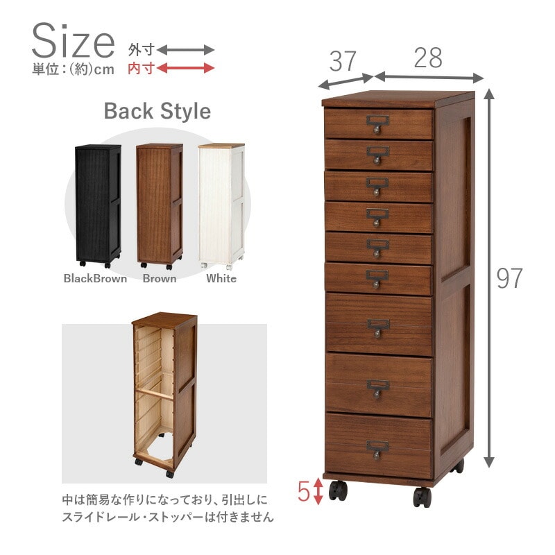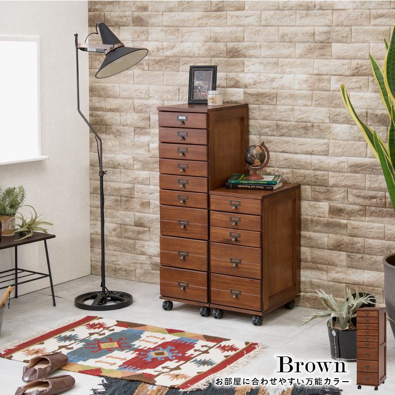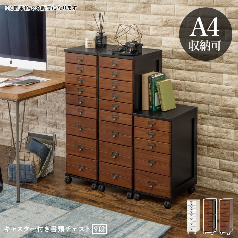 チェスト 9段 A4 ファイル 収納 大容量 引き出し 木目調 アンティーク キャスター ストッパー付き ネームプレート キッチン【送料無料】