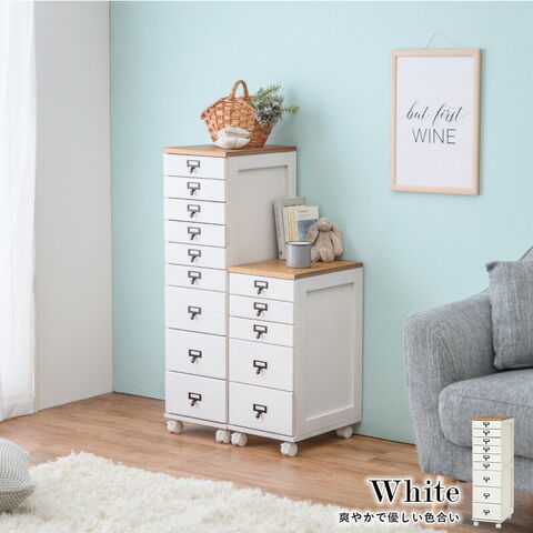 キャスター付きで移動も楽な多段チェスト。引出しにはA4クリアファイル収納可能。