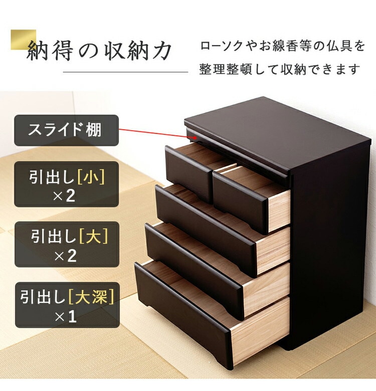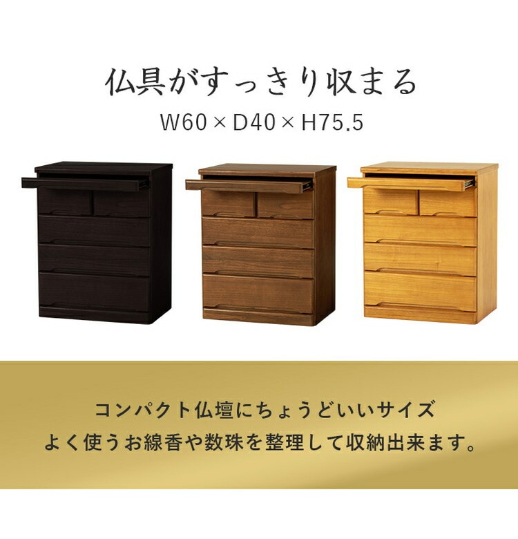 仏壇チェスト 完成品 幅60 奥行40 高さ75.5 仏壇下台 桐製 ミニ仏壇 スライド棚 引出し 仏具 収納 木製 シンプル おしゃれ【送料無料】