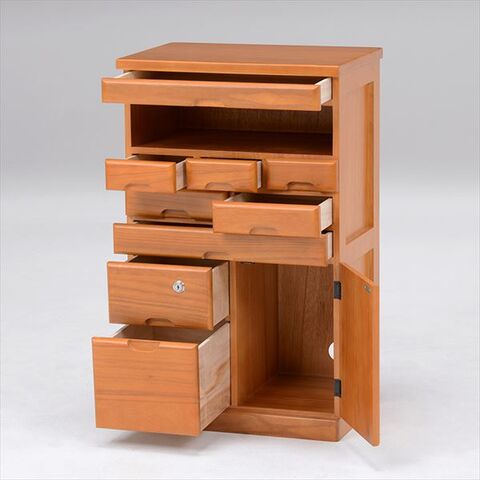 多引き出しのFAX台。鍵付きの引出しには重要なものを保管できます。