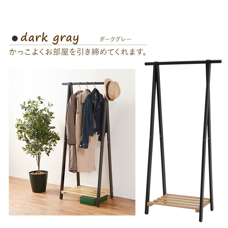 天然木の風合いがおしゃれな棚付きハンガーラック
