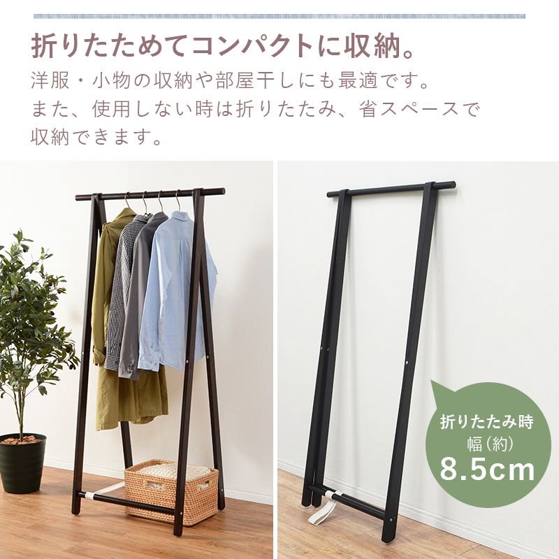 必要な時だけ出して、さっと折りたためる天然木ハンガーラック