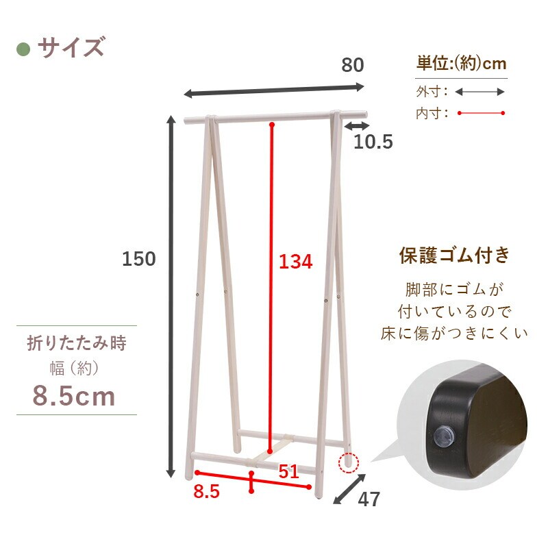 ハンガーラック 折りたたみ 天然木 パイン材 幅80cm 奥行47cm 高さ150cm 木製 コートハンガー MHR-6034 萩原 スリム【送料無料】