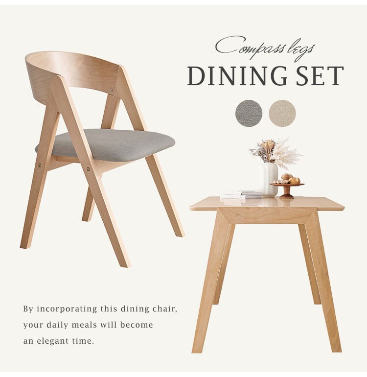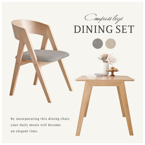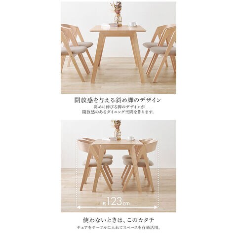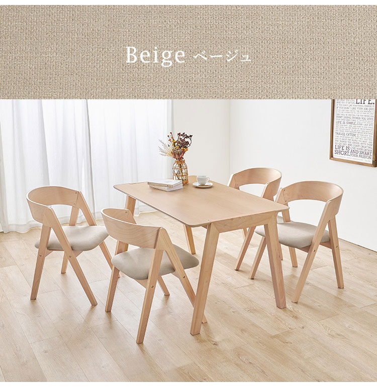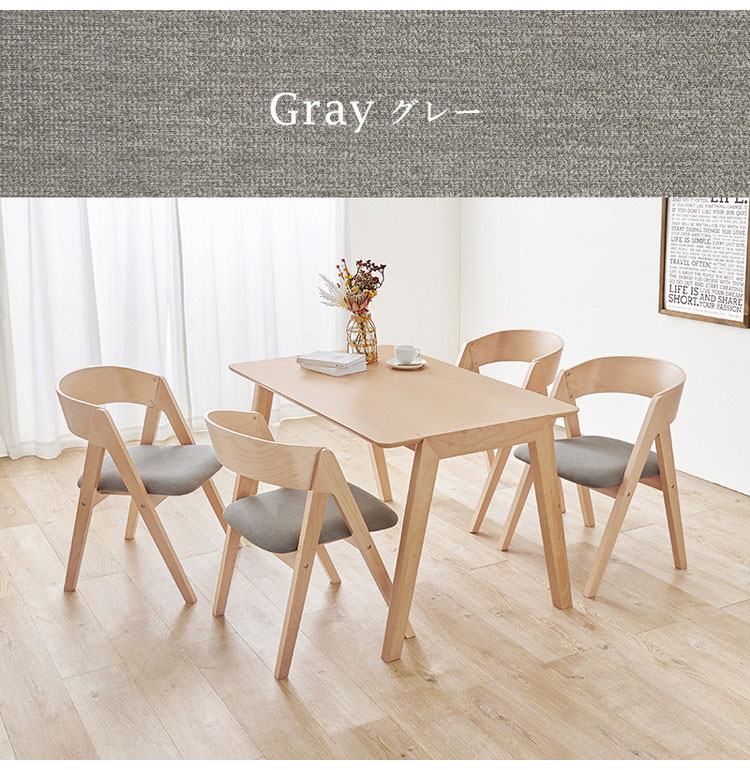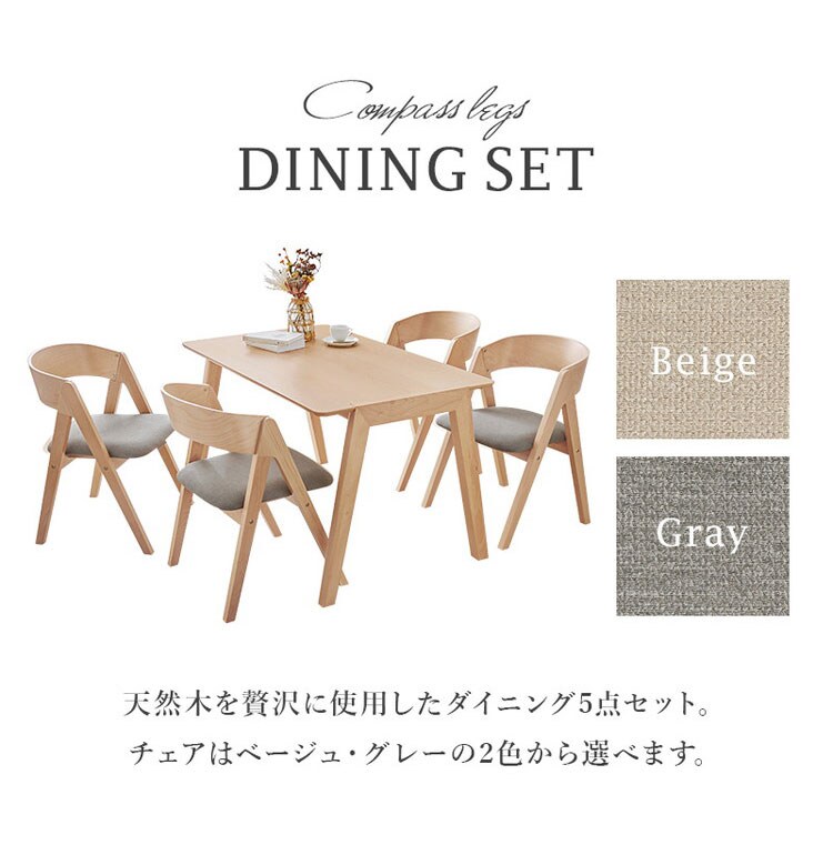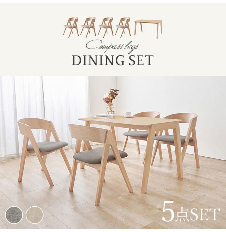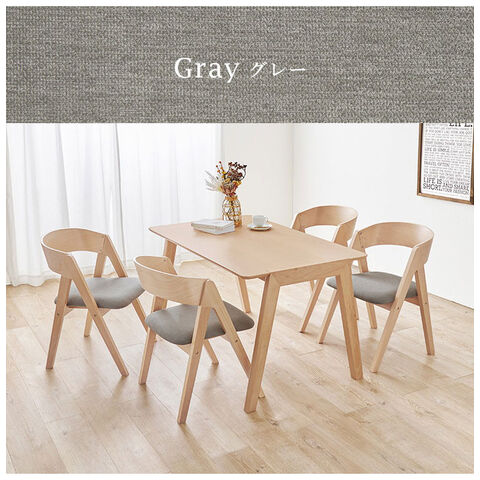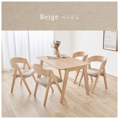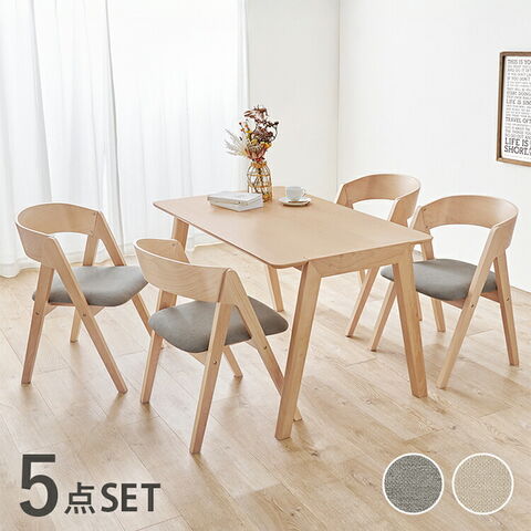 天然木を贅沢に使用したダイニング5点セット。直線と曲線の調和のとれたシルエットがダイニング空間を北欧モダンな雰囲気に。