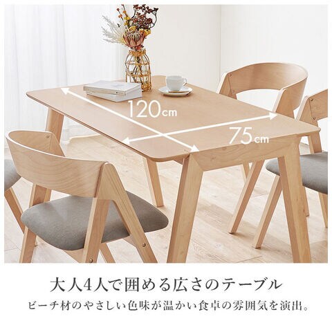 天然木 ダイニングテーブルセット テーブル+ダイニングチェア4脚 幅120cm 4人掛け 北欧 デザイン ダイニングセット ダイニングチェア モダン おしゃれ【送料無料】