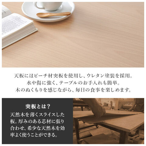 主材:ビーチ集成材、天板:天然木化粧繊維板、張地:ポリエステル