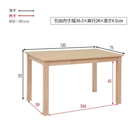 テーブル:(約)幅120×奥行75×高さ70cm、