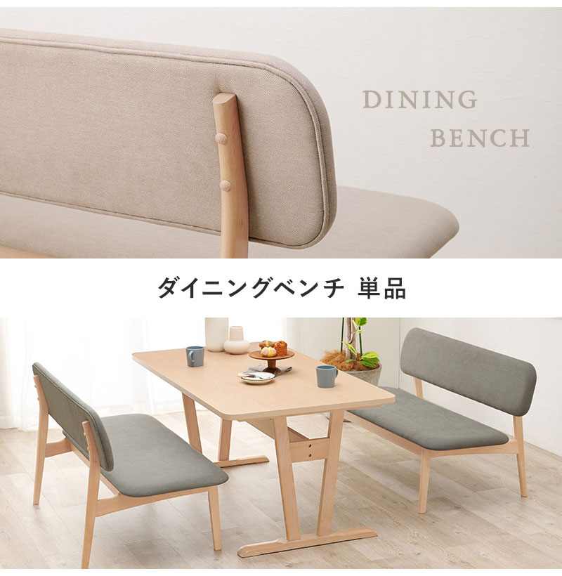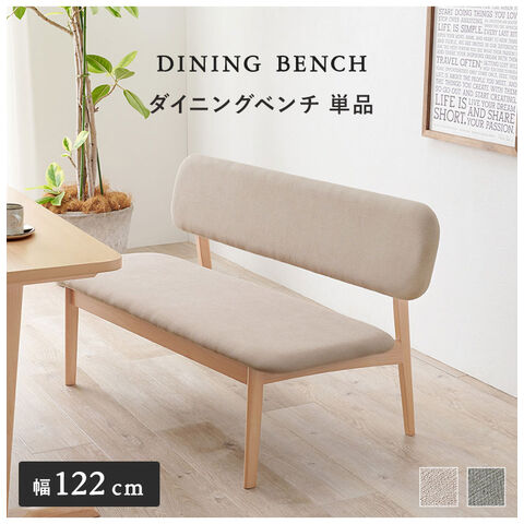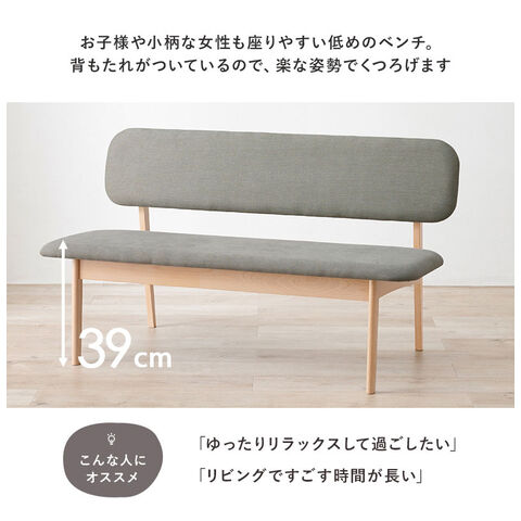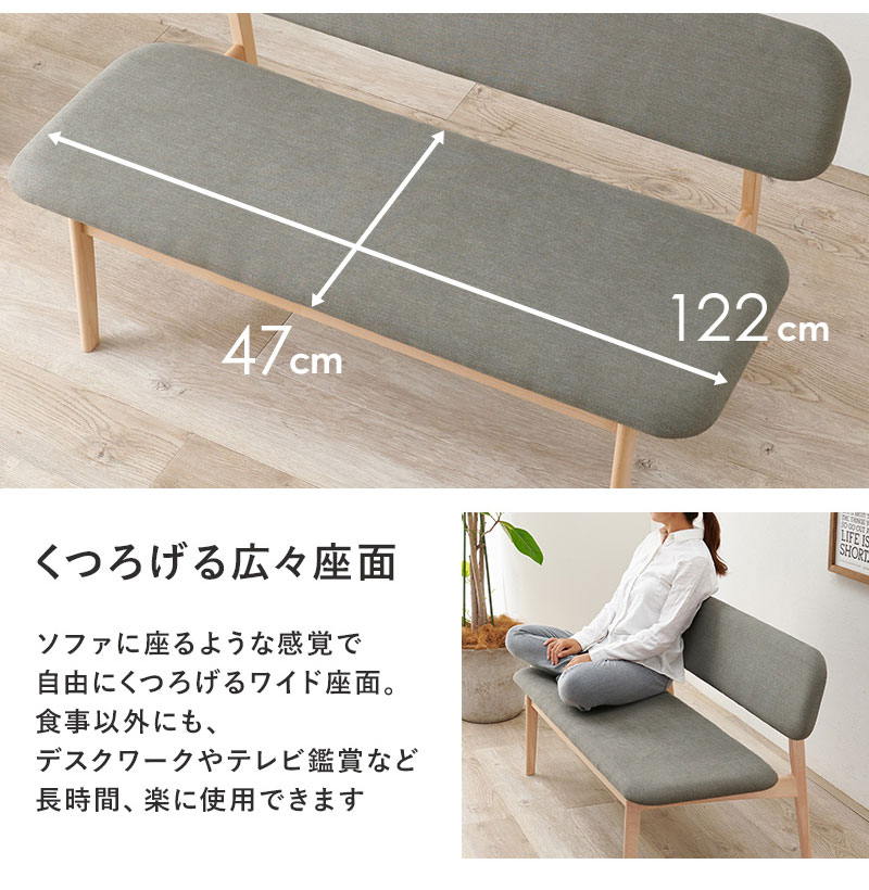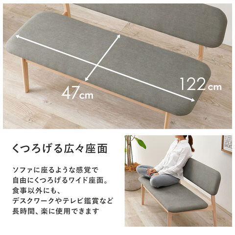 ダイニングベンチ 幅122 ゆったり座面 ロータイプ 背もたれ付き ベンチソファ 天然木 ビーチ材 ファブリック 椅子 イス リビング 可愛い かわいい シンプル 北欧 モダン おしゃれ【送料無料】