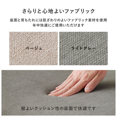 主材:天然木(ビーチ材)、張地:ポリエステル、クッション材:ウレタンフォーム