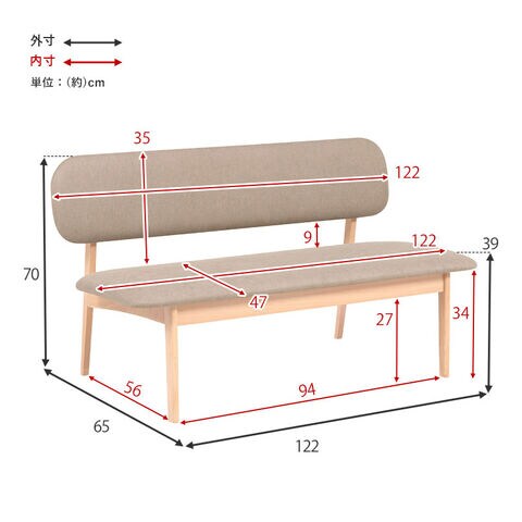 (約)幅122×奥行65×高さ70×座面高39cm
