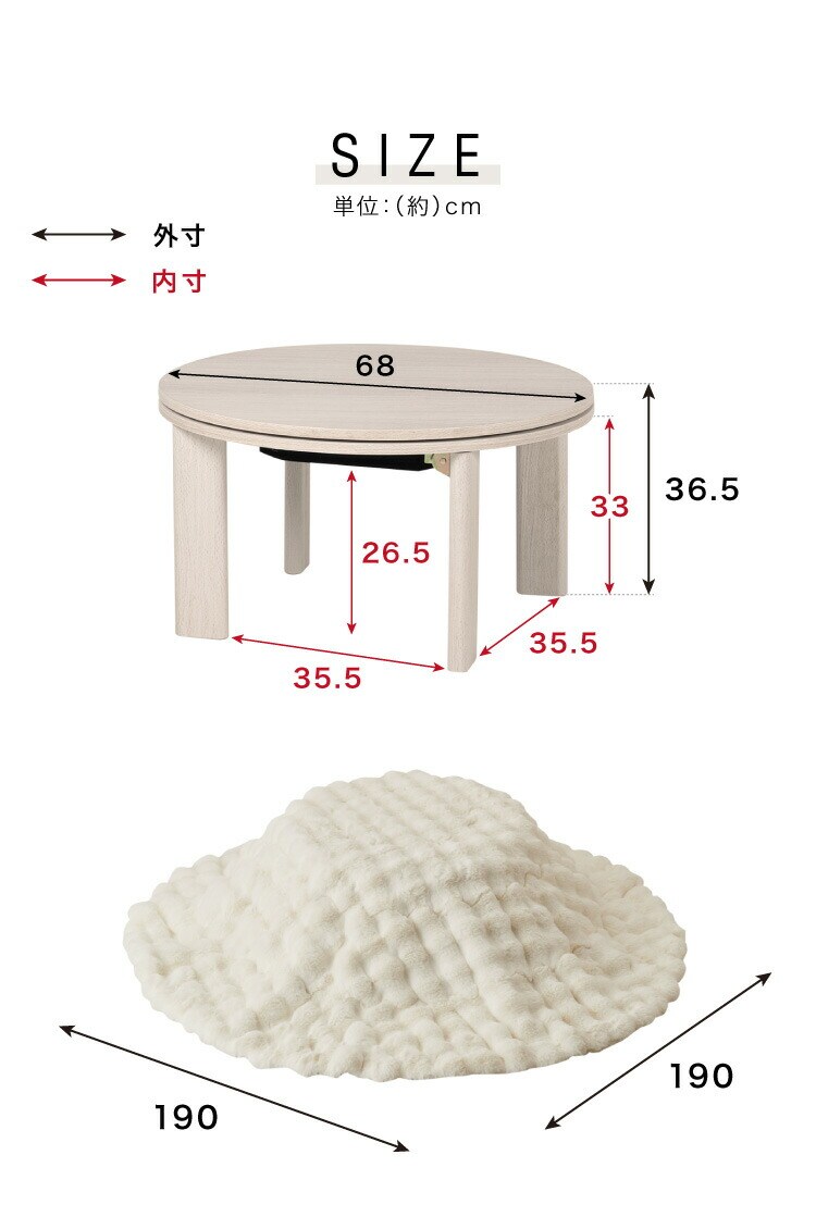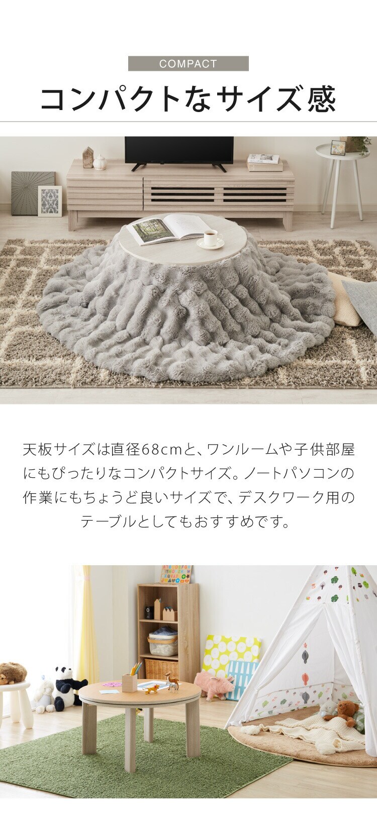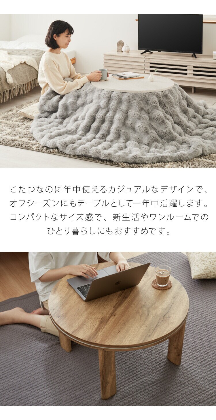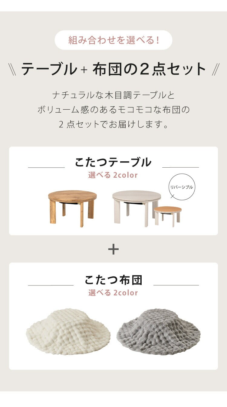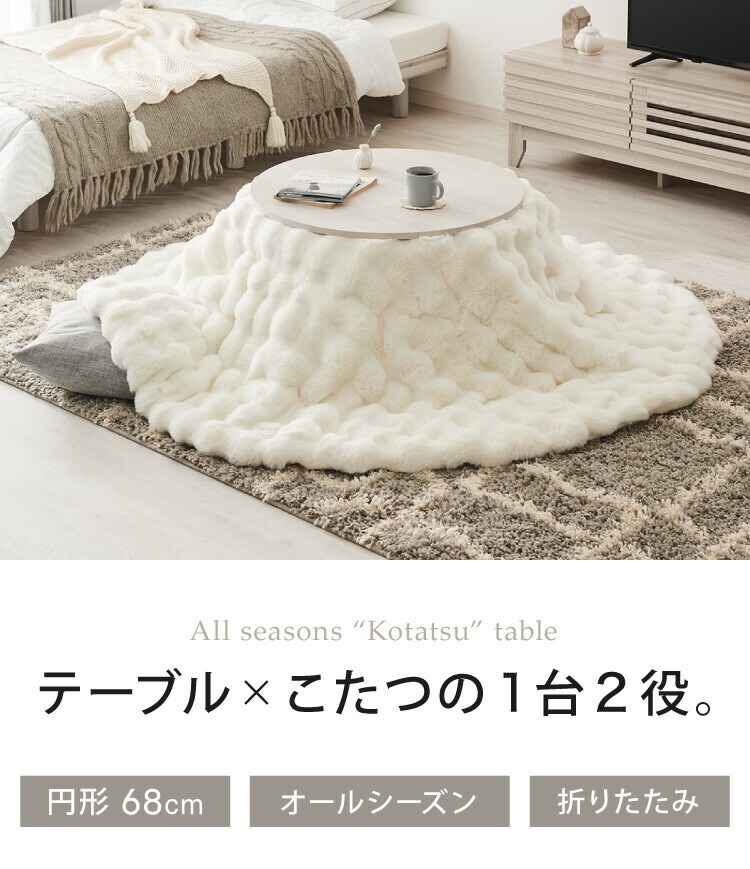カジュアルこたつ 布団付き 2点セット 円形テーブル+もこもこ布団 幅68 折れ脚 炬燵 コタツ 北欧 ふわふわ こたつ布団 ふわとろ かわいい 可愛い センターテーブル ローテーブル おしゃれ【送料無料】