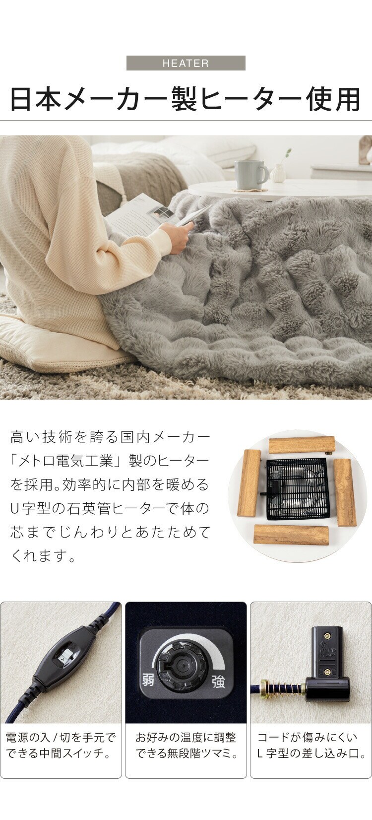こたつ、暖房製品で高い技術を誇るメトロ電気工業株式会社のヒーターを採用。