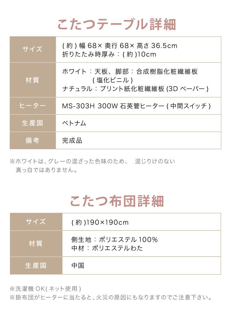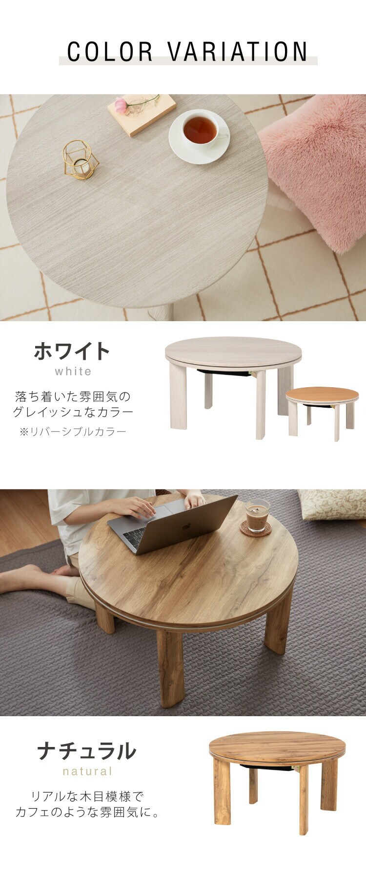 ※こたつテーブルのホワイトは、グレーの混ざった色味のため、混じりけのない真っ白ではありません。