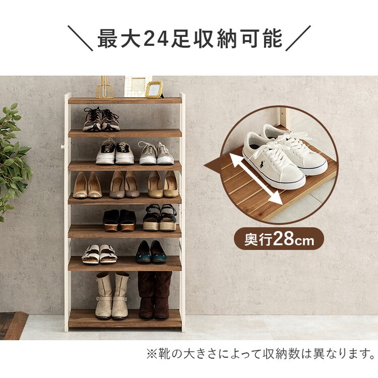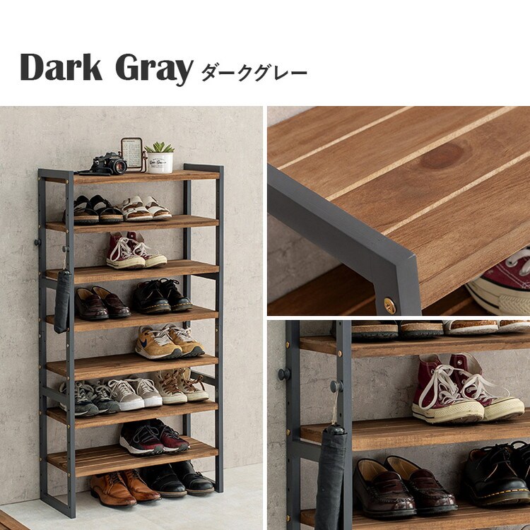 天然木 シューズラック 7段 幅65cm サンダルからブーツまで 可動棚 オープンラック 棚 収納 靴箱 シューズボックス 玄関収納 おしゃれ【送料無料】