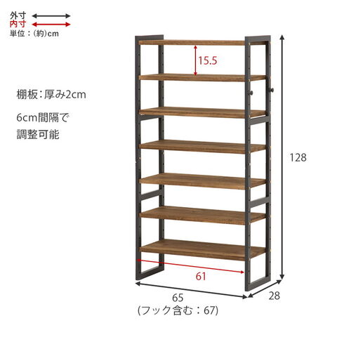 ■組立式■フック2個付■可動棚:7枚(6cmピッチ)