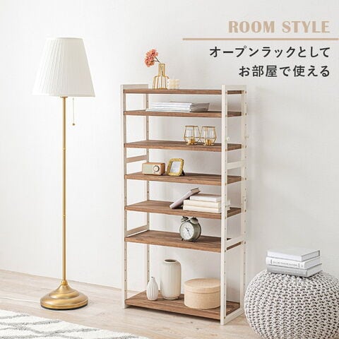 サンダルからブーツまで、靴の高さに合わせて棚の高さを組み換えできるシューズラック。靴が見やすく取り出しやすいオープンタイプ。