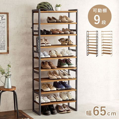 天然木 シューズラック 9段 幅65cm サンダルからブーツまで 可動棚 オープンラック 棚 収納 靴箱 シューズボックス 玄関収納 おしゃれ【送料無料】