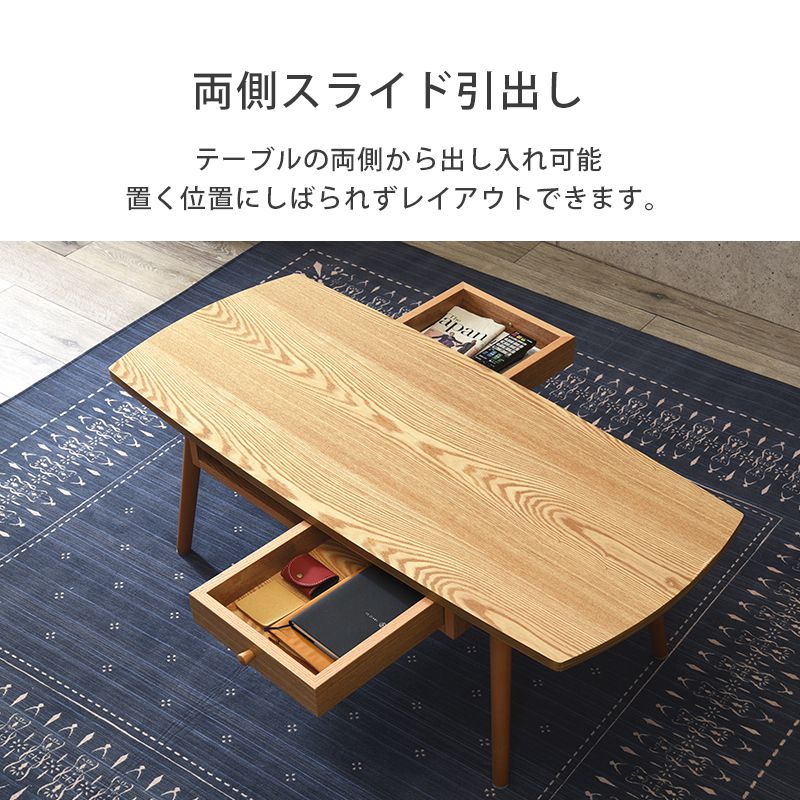 センターテーブル 引出し 天板 110×48cm 天然木 タモ材 ウォールナット UV塗装 両側スライド 引き出し 収納【送料無料】