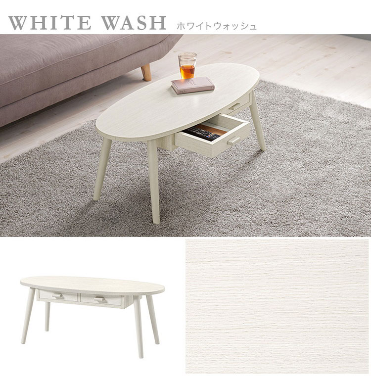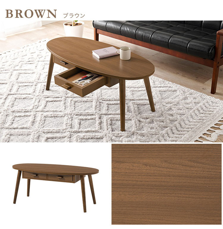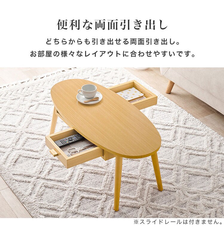 センターテーブル 引き出し付き 収納付き 90×40cm 楕円 オーバル ローテーブル 机 ソファテーブル コーヒーテーブル 北欧 シンプル モダン おしゃれ【送料無料】