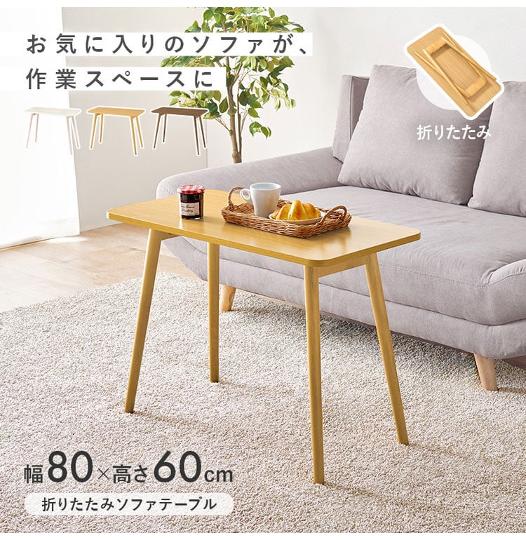 ソファに座ってのパソコン作業や読書にピッタリな高さ。作業スペースは確保しつつコンパクトに折りたためて移動や収納にも便利。