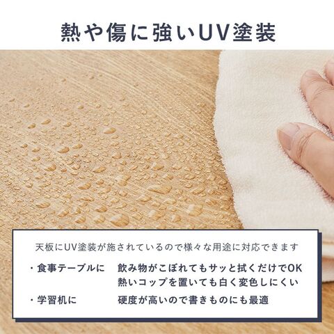 天然木の木目を楽しむ折れ脚テーブル。熱や傷に強いUV塗装仕上げ。