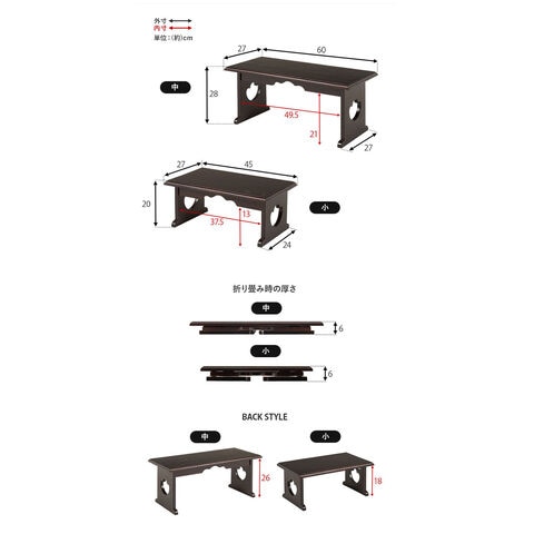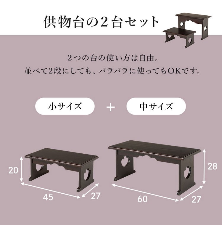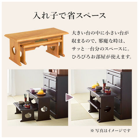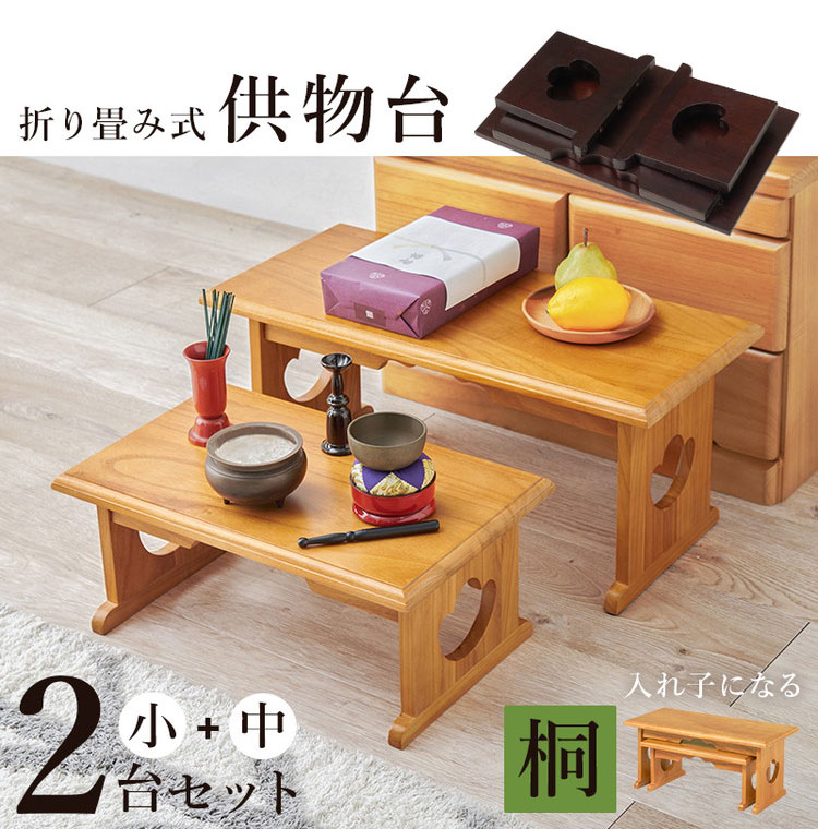 天然木 桐製 折りたたみ供物台 2点セット 小+中サイズ 折りたたみテーブル 便利机 供物台 経机 天然木 文机 仏具台 法事 お彼岸 和室 和風 仏前 折りたたみ 折り畳み【送料無料】