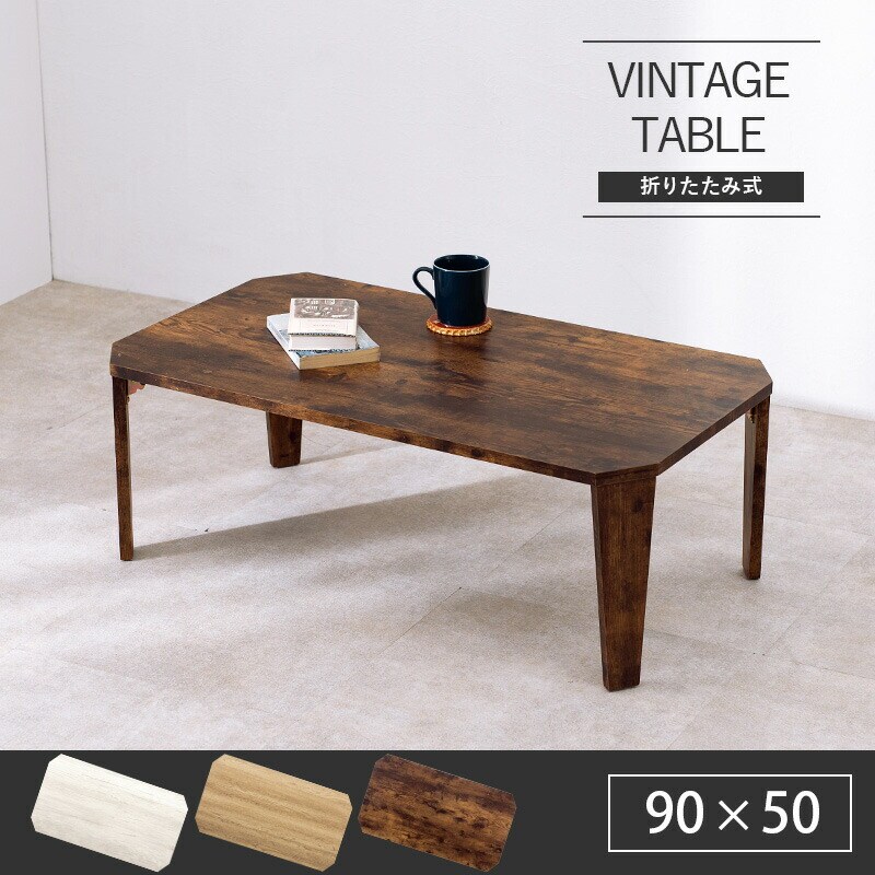 折りたたみテーブル センターテーブル 90×50cm ヴィンテージ古木調 モダン 北欧 おしゃれ 折りたたみ 収納 コンパクト 省スペース 折りたたみ 折れ脚テーブル テーブル 机 ローテーブル 一人暮らし 新生活 【送料無料】