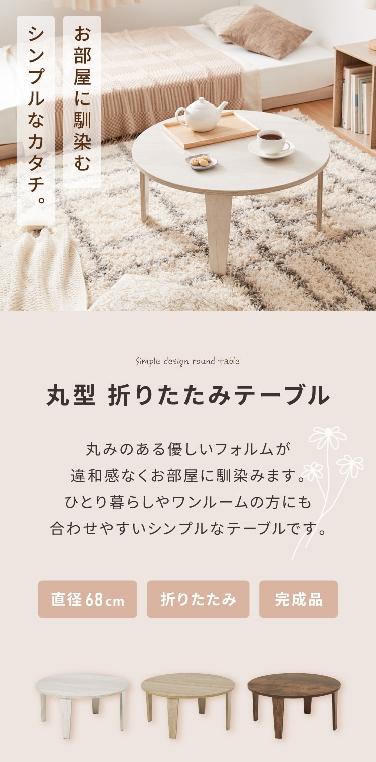 折りたたみテーブル 円形 68cm 折れ脚 テーブル ローテーブル センターテーブル 丸型 木目 ヴィンテージ調 ホワイト 白 ナチュラル 可愛い かわいい リビングテーブル 机 デスク 北欧 おしゃれ【送料無料】