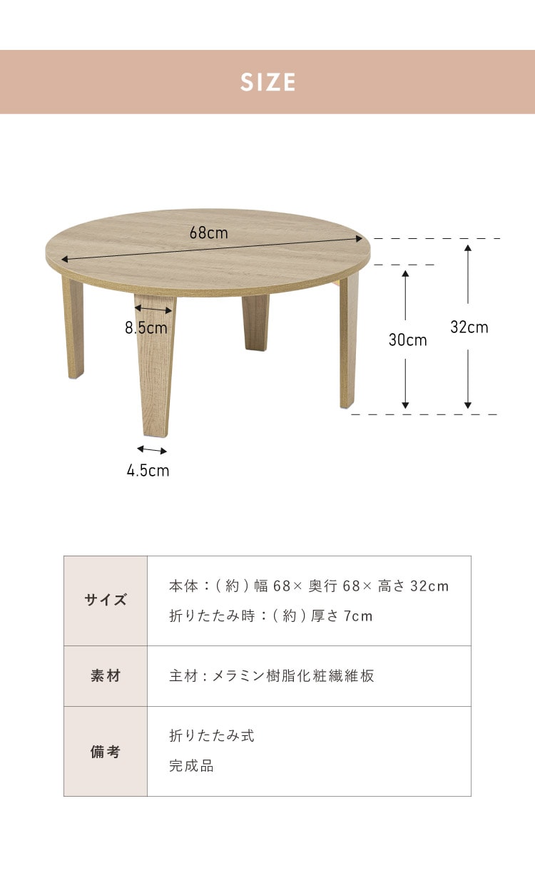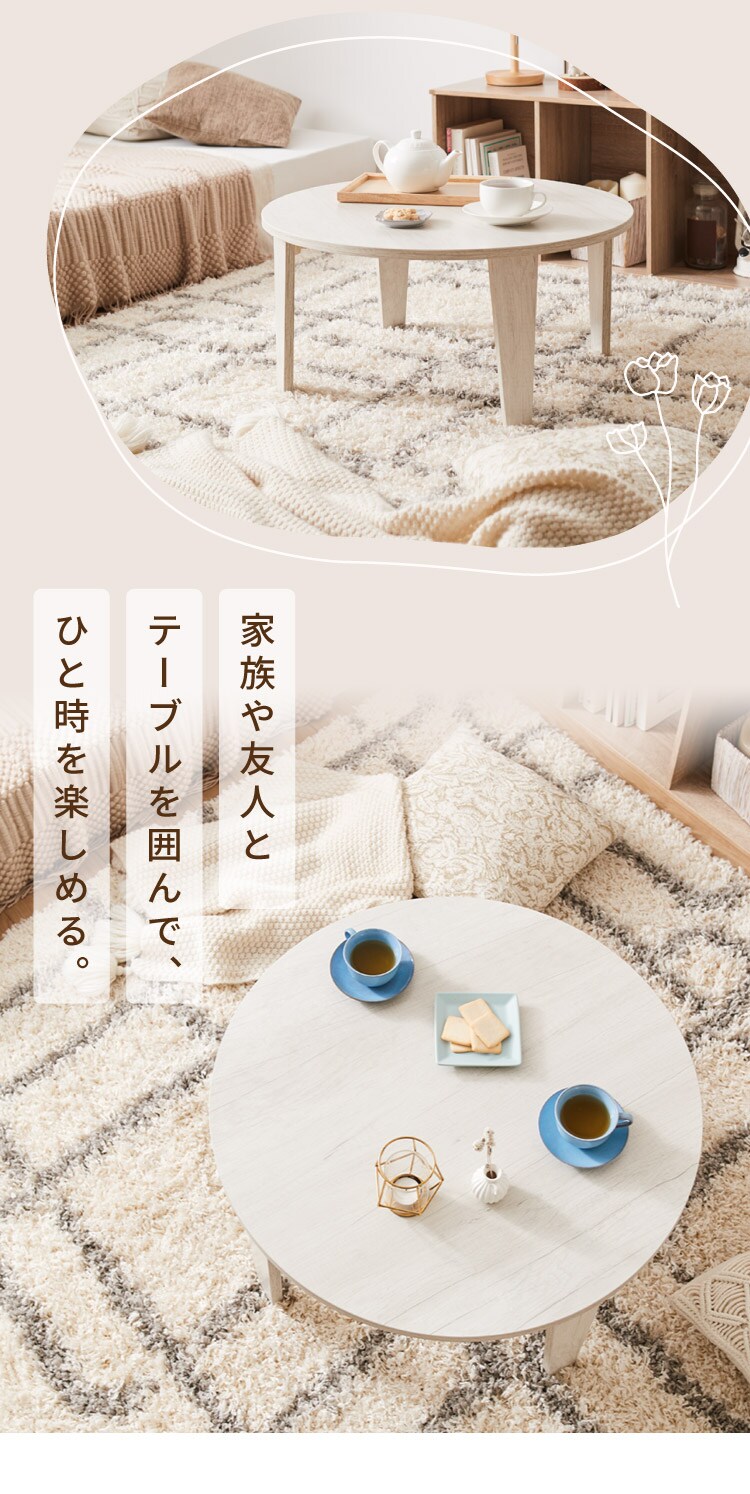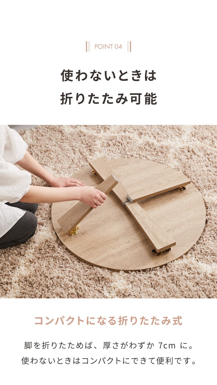 折りたたみテーブル 円形 68cm 折れ脚 テーブル ローテーブル センターテーブル 丸型 木目 ヴィンテージ調 ホワイト 白 ナチュラル 可愛い かわいい リビングテーブル 机 デスク 北欧 おしゃれ【送料無料】のレビュー