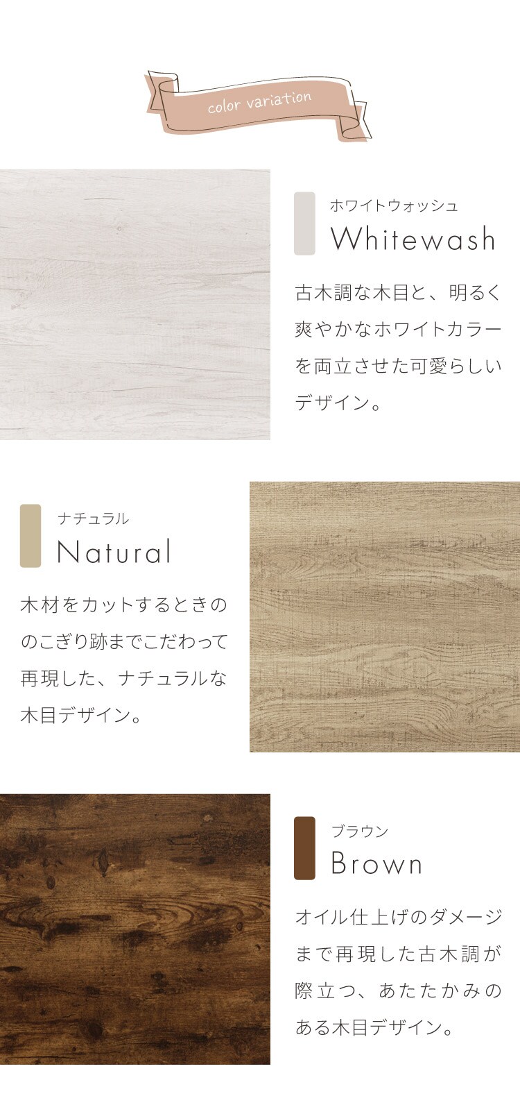 ホワイトウォッシュ:古木調の木目と明るく爽やかなホワイトカラーを両立させた可愛いデザイン。