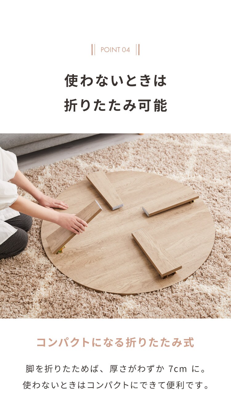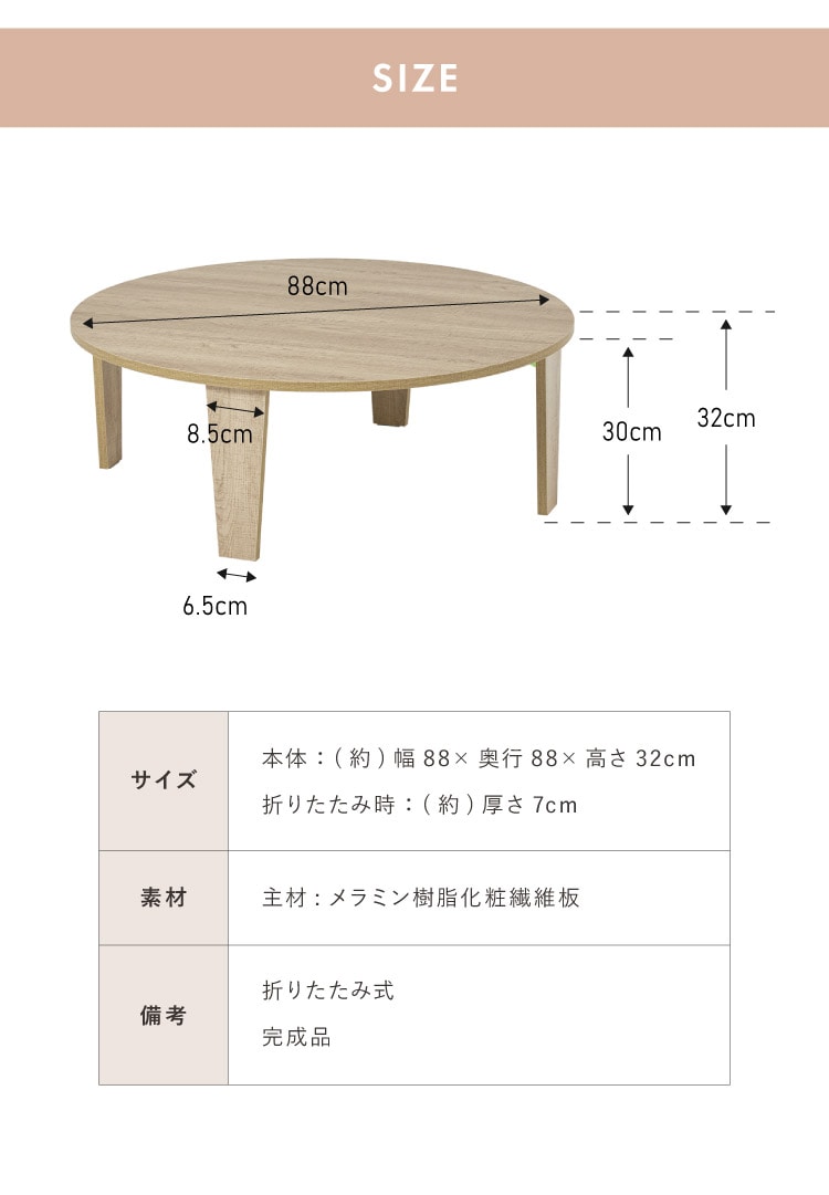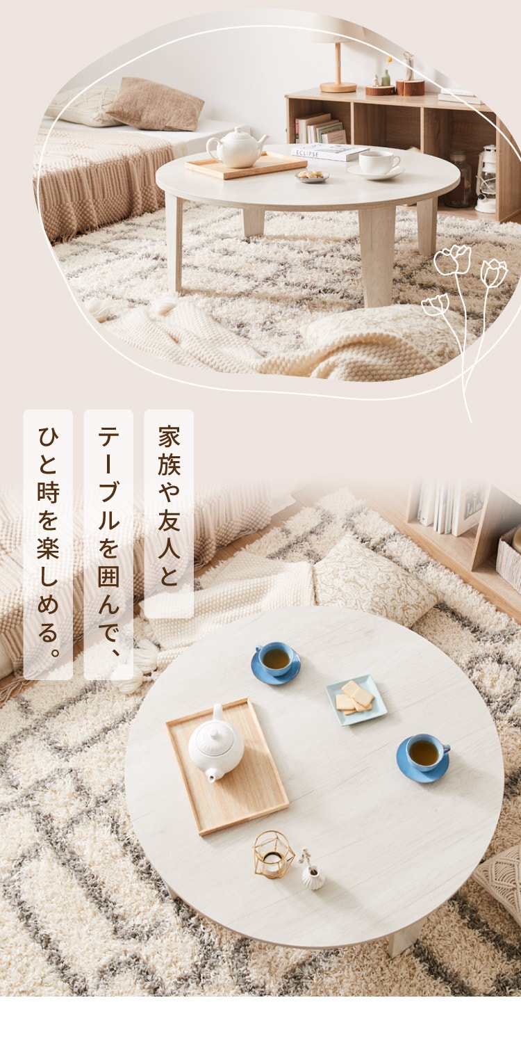 折りたたみテーブル 円形 88cm 折れ脚 テーブル ローテーブル センターテーブル 丸型 木目 ヴィンテージ調 ホワイト 白 ナチュラル 可愛い かわいい リビングテーブル 机 デスク 北欧 おしゃれ【送料無料】