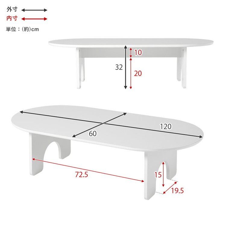 オーバル型 センターテーブル 120×60cm 白 ホワイト おしゃれ ローテーブル 円形 楕円 デスク ソファーテーブル コーヒーテーブル 机 シンプル【送料無料】