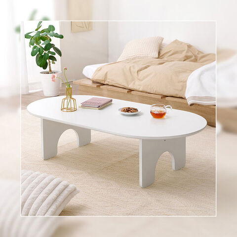 ころんとしたシルエットがかわいい、オーバル型のローテーブル。脚部をアーチ型にすることでシンプルなのに目を引くデザインに。