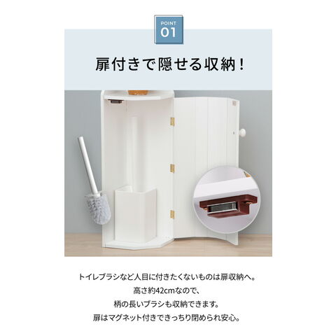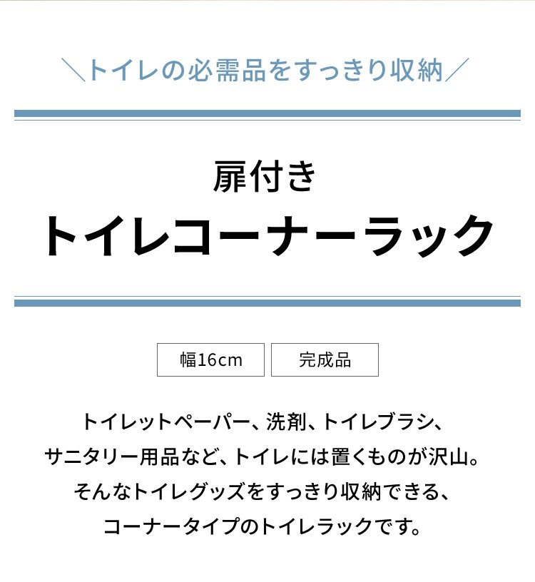 コーナーのデッドスペースを活用できる省スペース収納トイレラック。