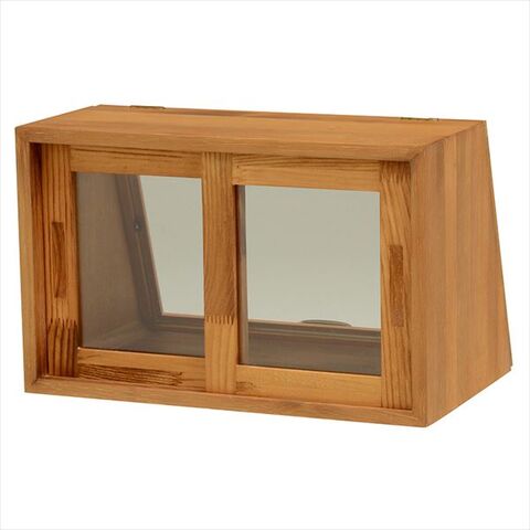 木の風合いが味わい深いカウンター上ガラスケース。表と裏で違う表情を見せる形状でディスプレイとしても活躍します。