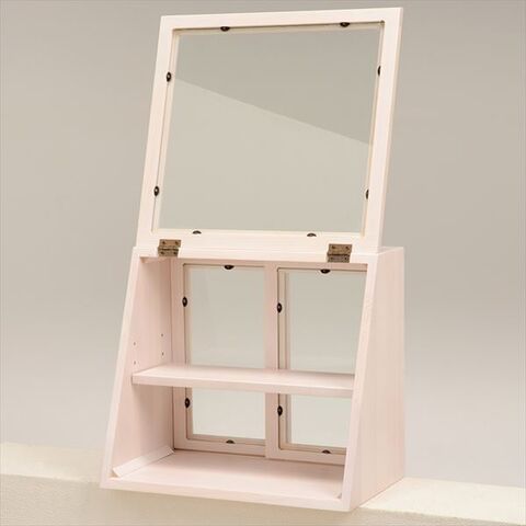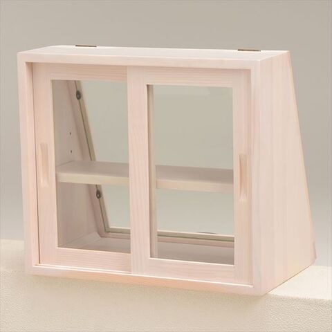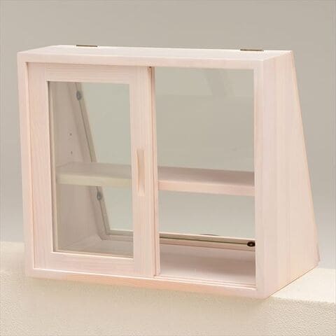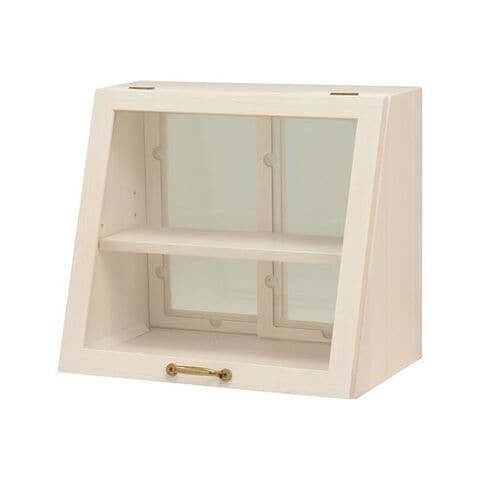 木の風合いが味わい深いカウンター上ガラスケース。表と裏で違う表情を見せる形状でディスプレイとしても活躍します。