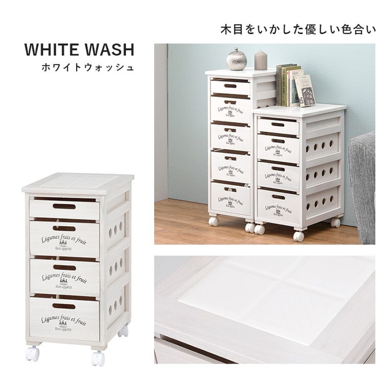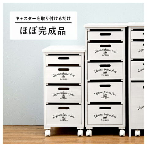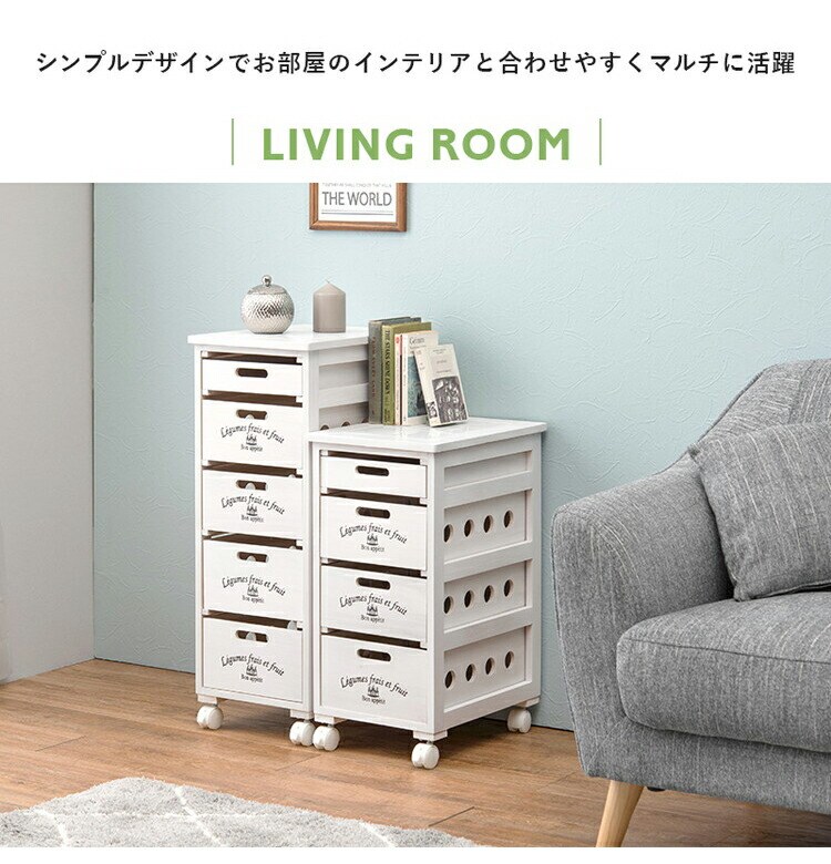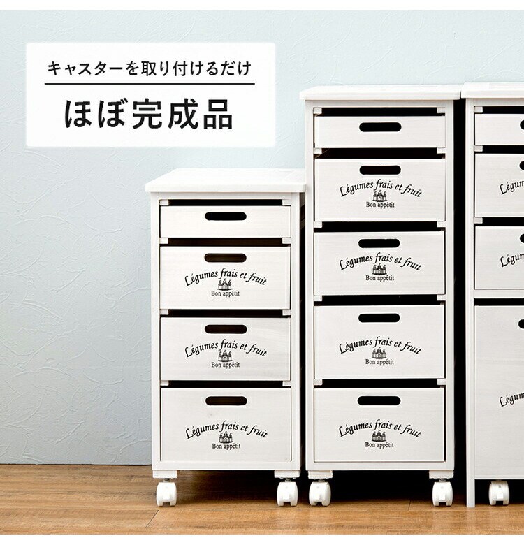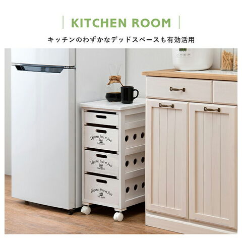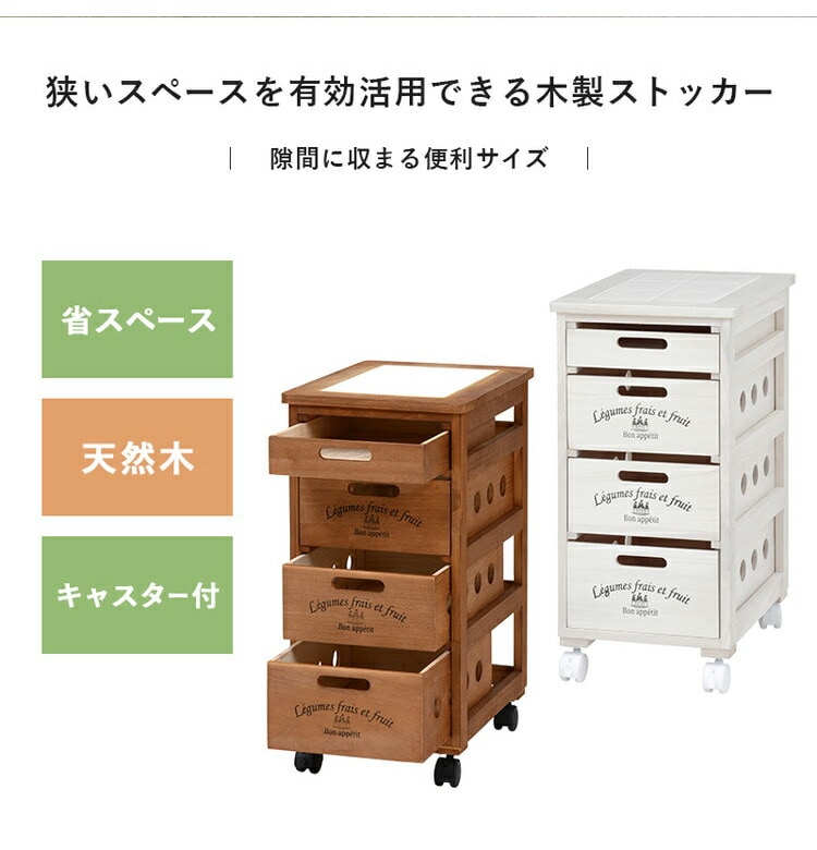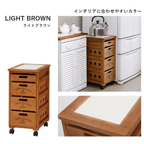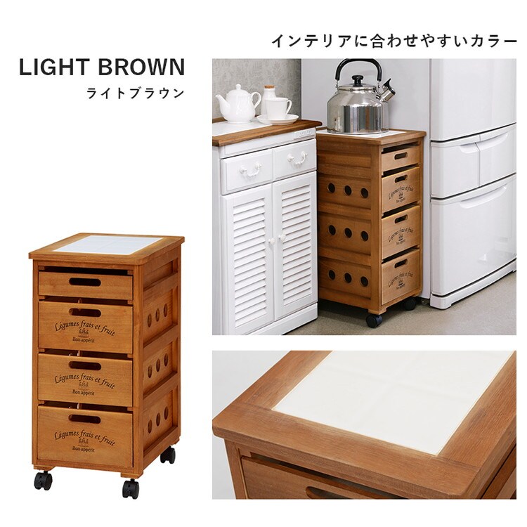 キャスター付きでラクラク!通気性のよい木製で野菜ストッカーにピッタリ。タイル天板は熱い鍋などを置くのにも便利。