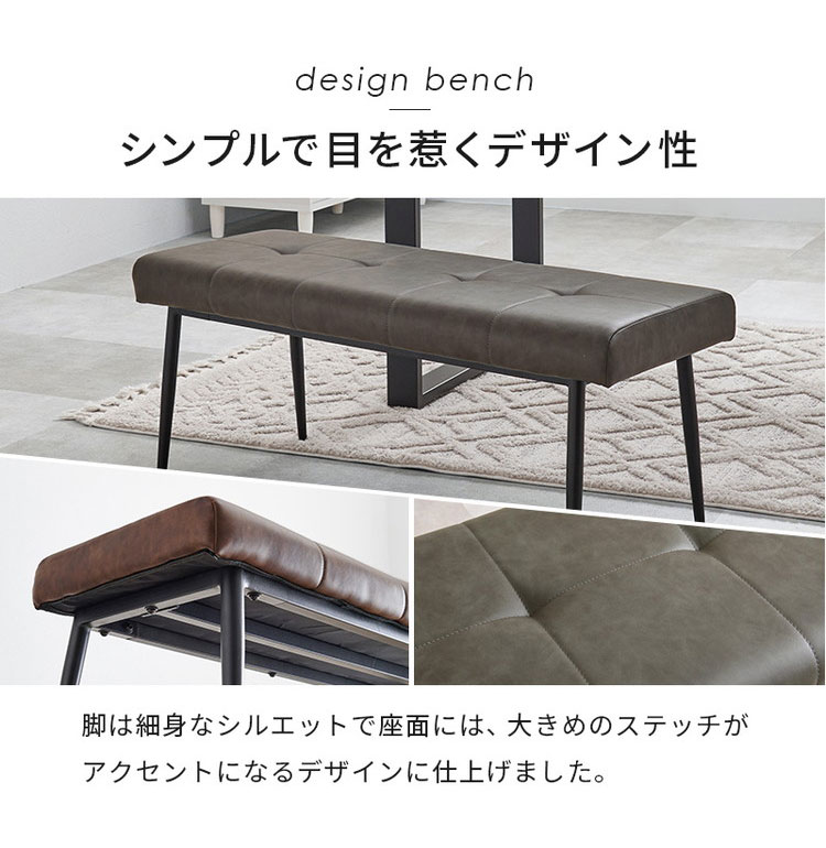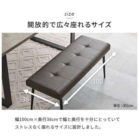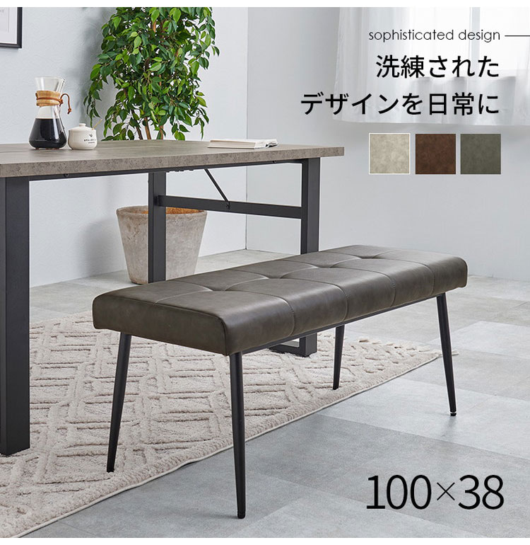 ダイニングベンチ 幅100×奥行き38cm 高さ42cm ヴィンテージ調 ベンチ 椅子 イス チェア スチール脚 レザー調 シンプル 北欧 おしゃれ【送料無料】