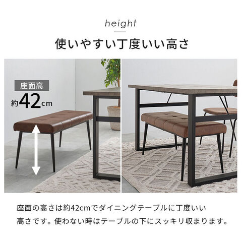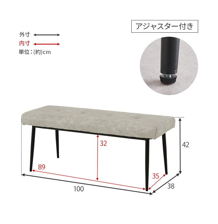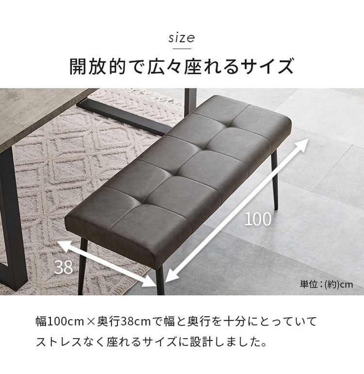 ダイニングベンチ 幅100×奥行き38cm 高さ42cm ヴィンテージ調 ベンチ 椅子 イス チェア スチール脚 レザー調 シンプル 北欧 おしゃれ【送料無料】のレビュー