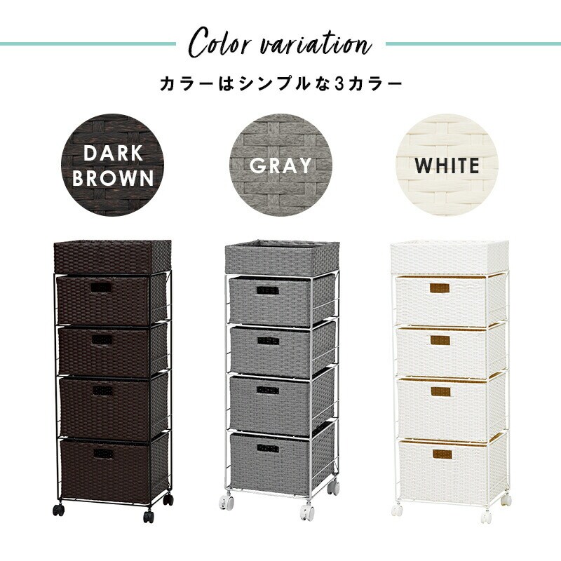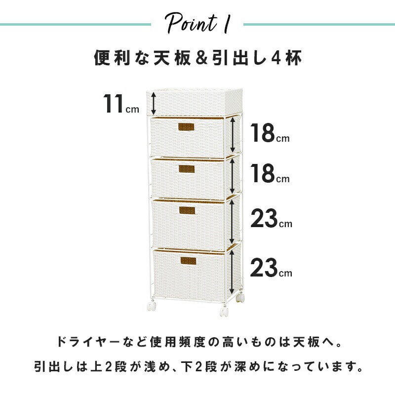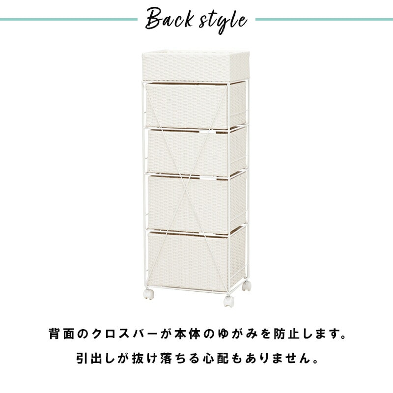 ランドリーラック 4段 ハイタイプ 幅40.5cm ラタン調 完成品 収納 かご カゴ 籠 棚 すき間収納 スリム ランドリーバスケット キャスター ランドリーチェスト 洗面所 サニタリー 脱衣所【送料無料】