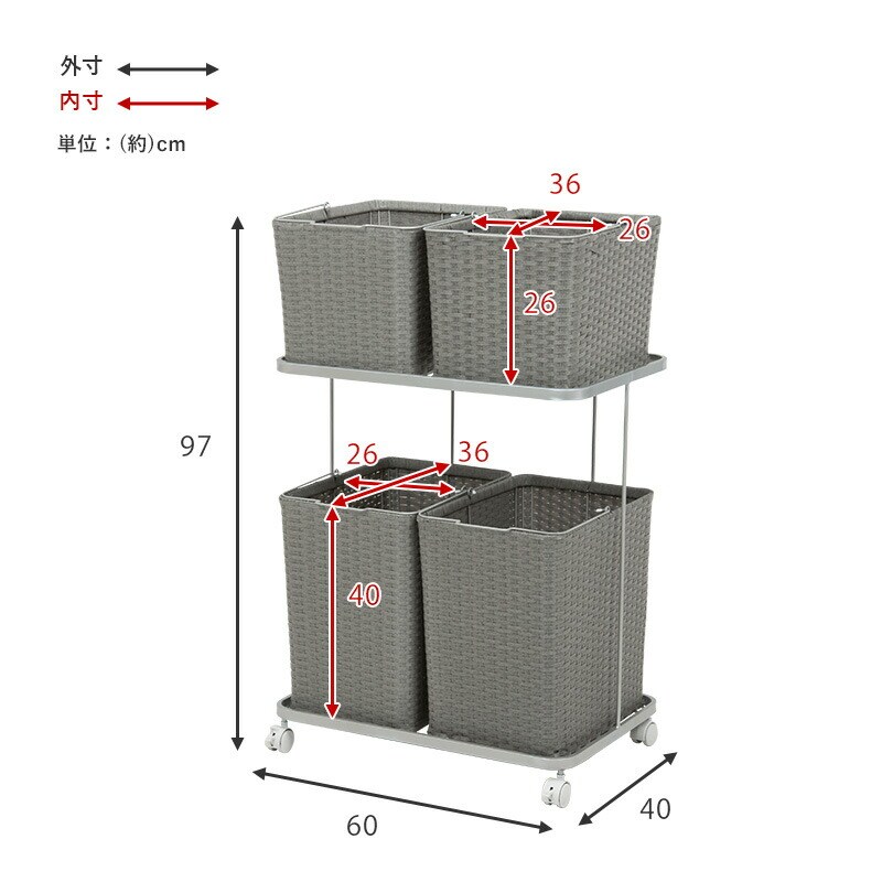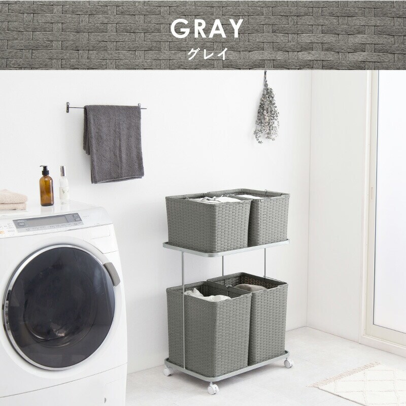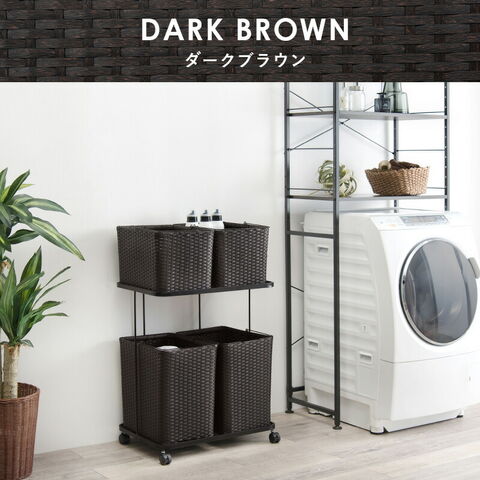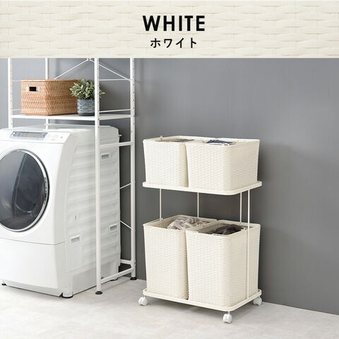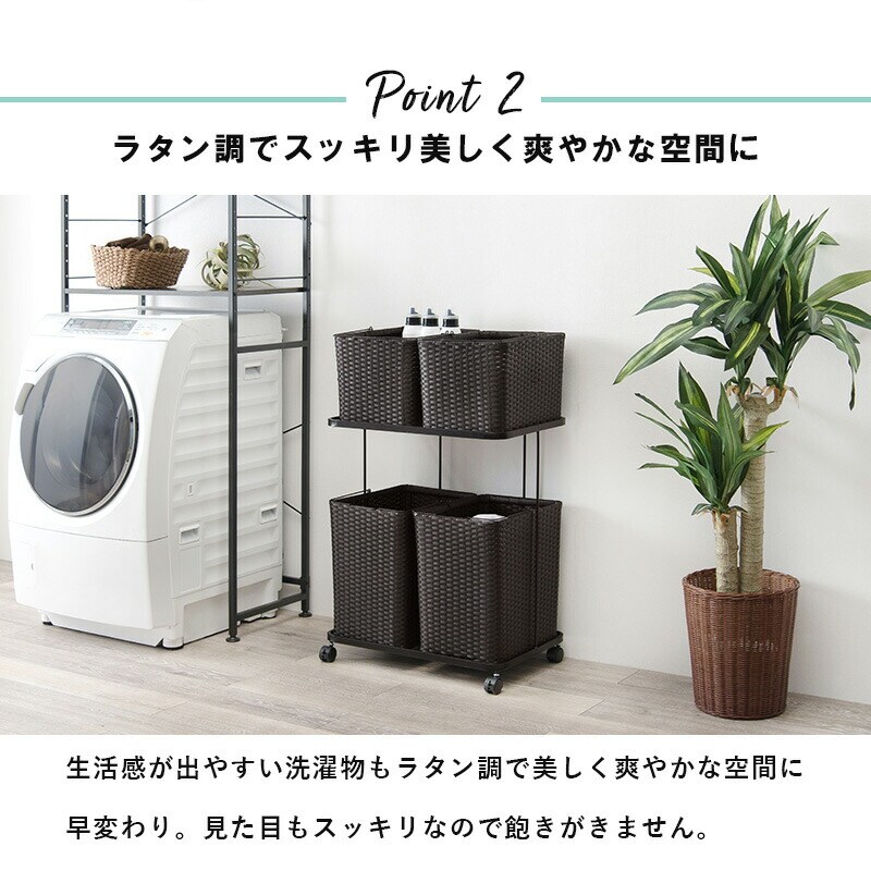 ランドリーラック ランドリーワゴン 2段 幅60cm ラタン調 完成品 収納 かご カゴ 籠 棚 すき間収納 スリム ランドリーバスケット キャスター ランドリーチェスト 洗面所 サニタリー 脱衣所【送料無料】