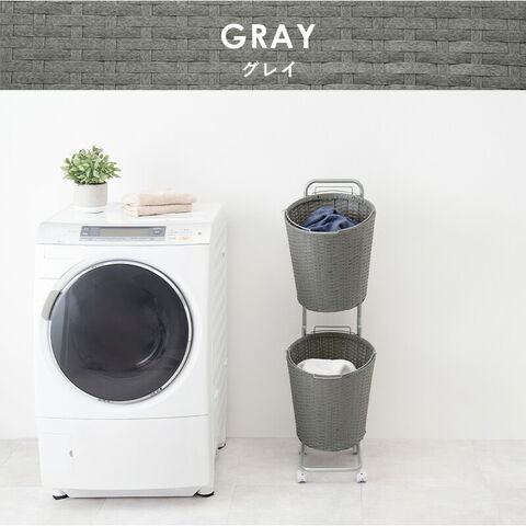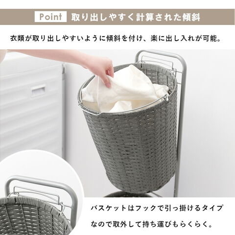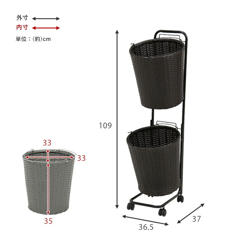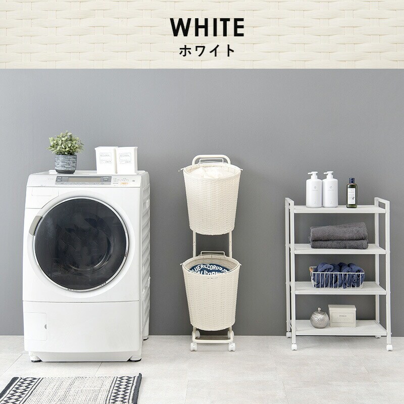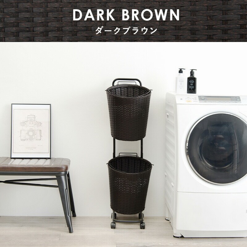 ランドリーラック 2段 幅35 ラタン調 完成品 収納 かご カゴ 籠 棚 すき間収納 スリム ランドリーバスケット キャスター ランドリーチェスト 洗面所 サニタリー 脱衣所【送料無料】