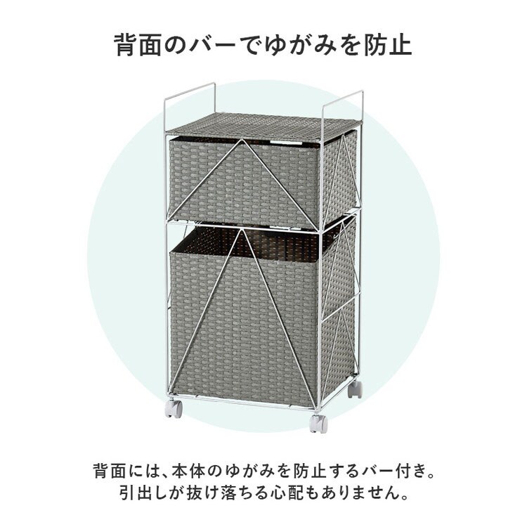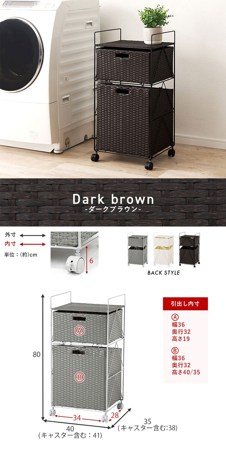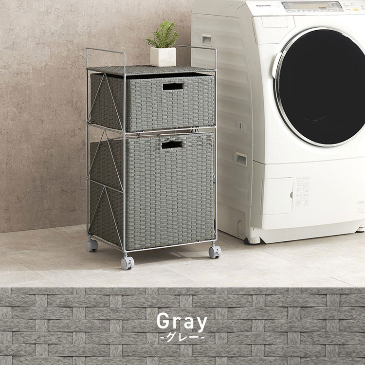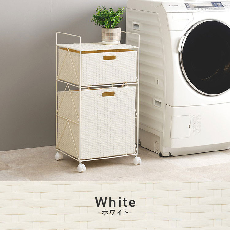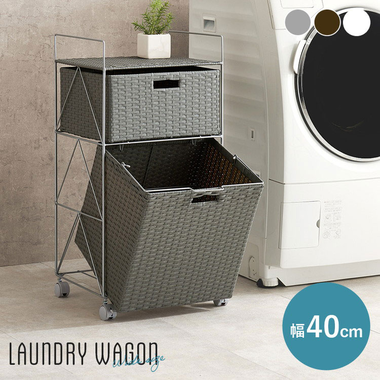 ランドリーワゴン 2段 大容量 幅40cm ランドリーバスケット 防水素材 ラタン調 PEラタン かご バスケット 洗濯かご 洗濯カゴ 収納ボックス シンプル おしゃれ【送料無料】