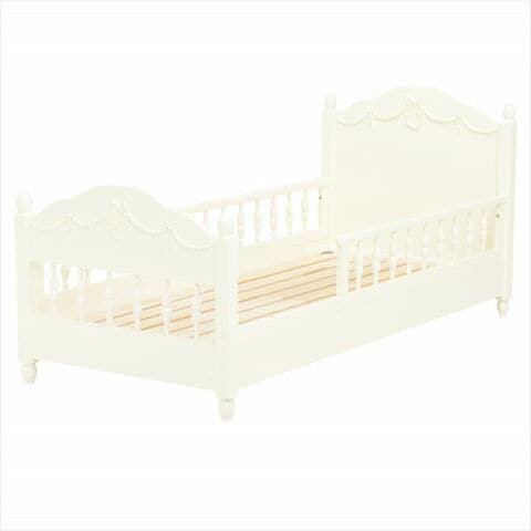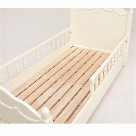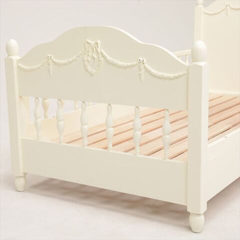 左右取り外し可能な柵付き。レリーフも可愛らしいプリンセスベッド。セミシングルショートサイズ