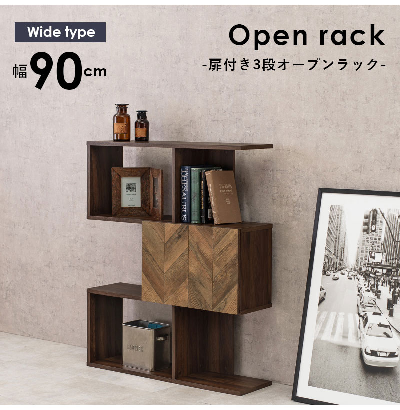 扉付きオープンラック 幅90cm 3段タイプ スリム ディスプレイラック 本棚 シェルフ S字ラック 間仕切り デスクラック 見せる収納 おしゃれ【送料無料】