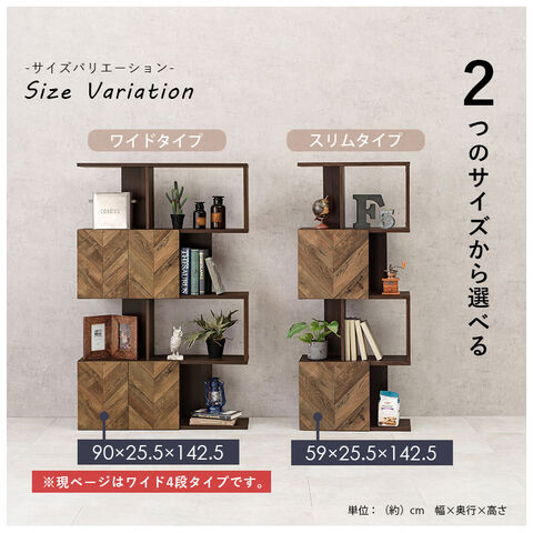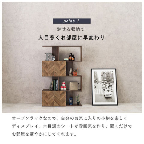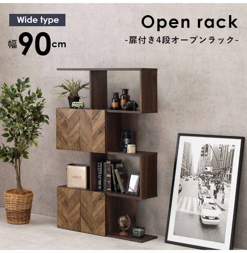 扉付きオープンラック 幅90cm 4段タイプ スリム ディスプレイラック 本棚 シェルフ S字ラック 間仕切り デスクラック 見せる収納 おしゃれ【送料無料】