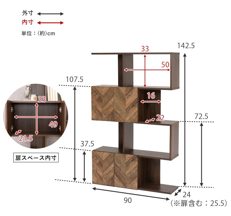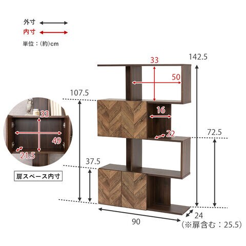 (約)幅90×奥行25.5×高さ142.5cm