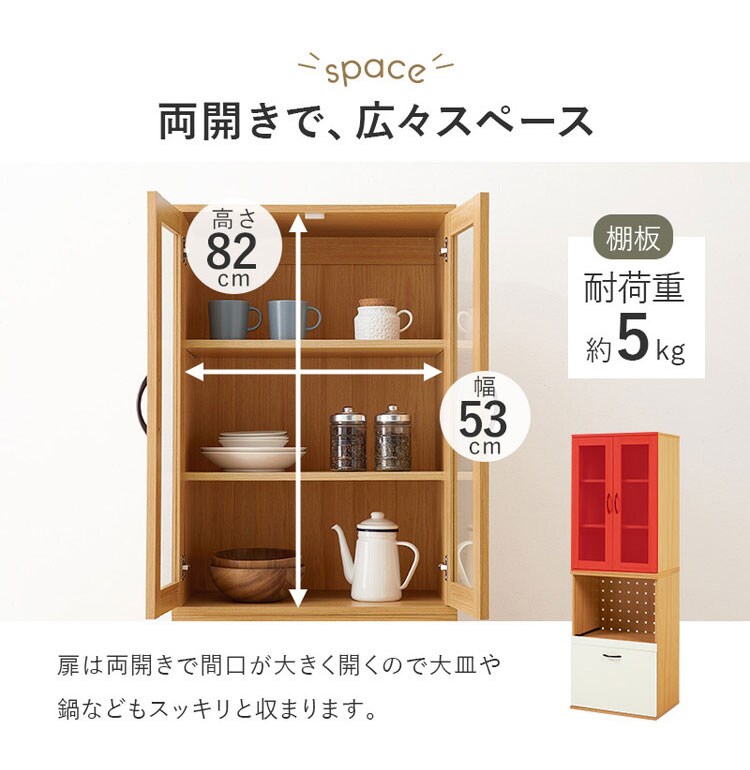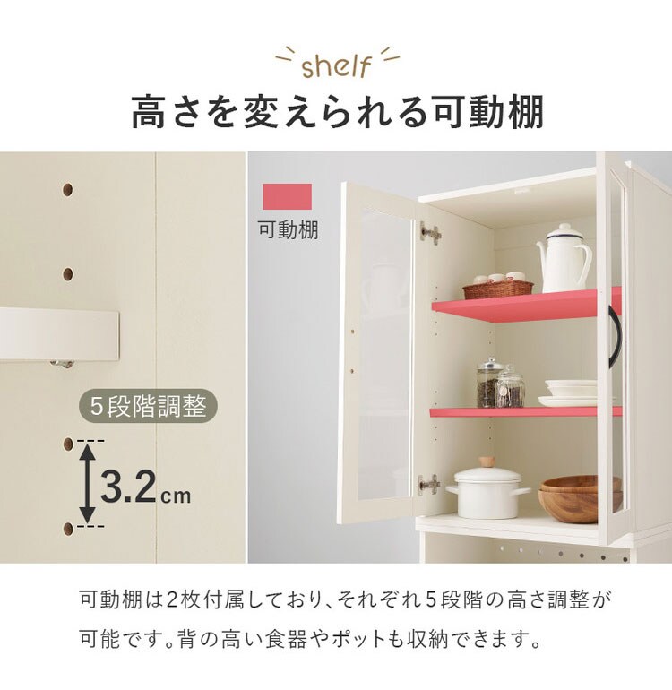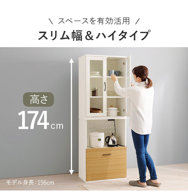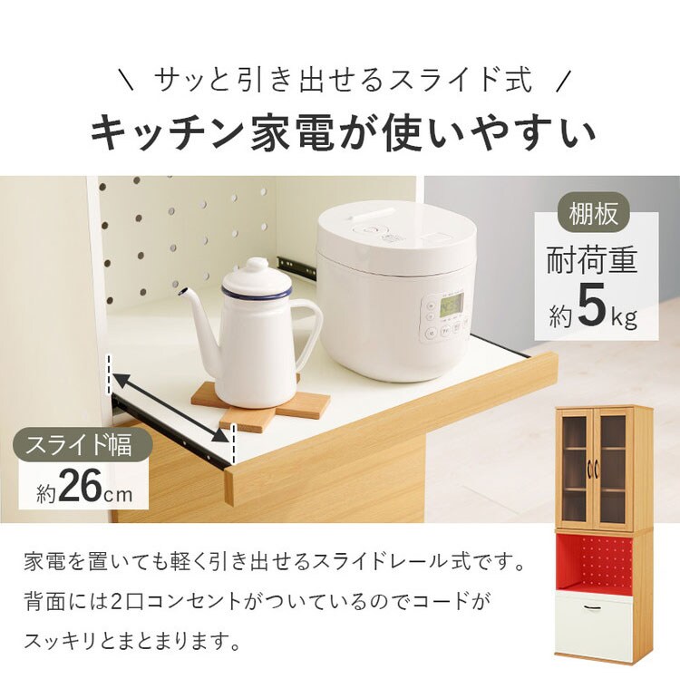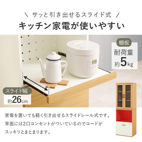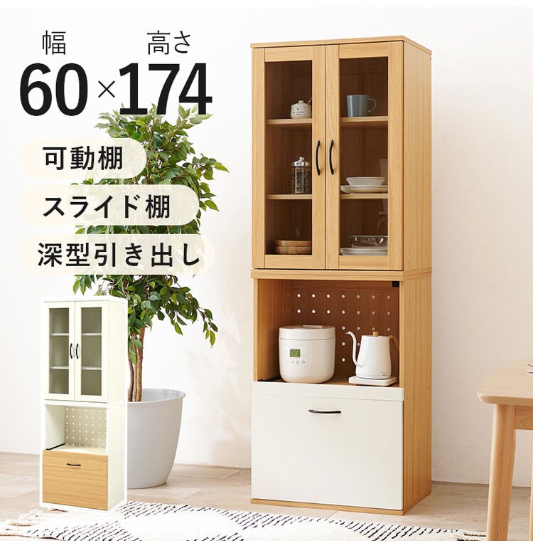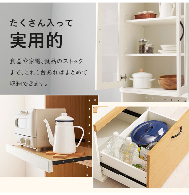 食器や調理家電、食品ストックまでまとめて収納でき、キッチン作業を効率化。隙間に置きやすい幅60cm