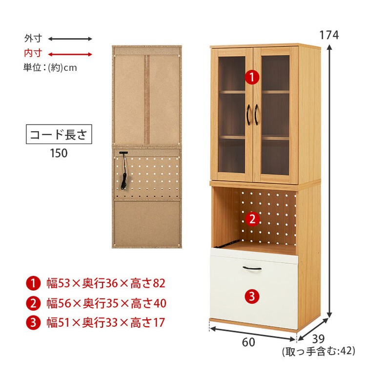 (約)幅60×奥行42(取手含む)×高さ174cm